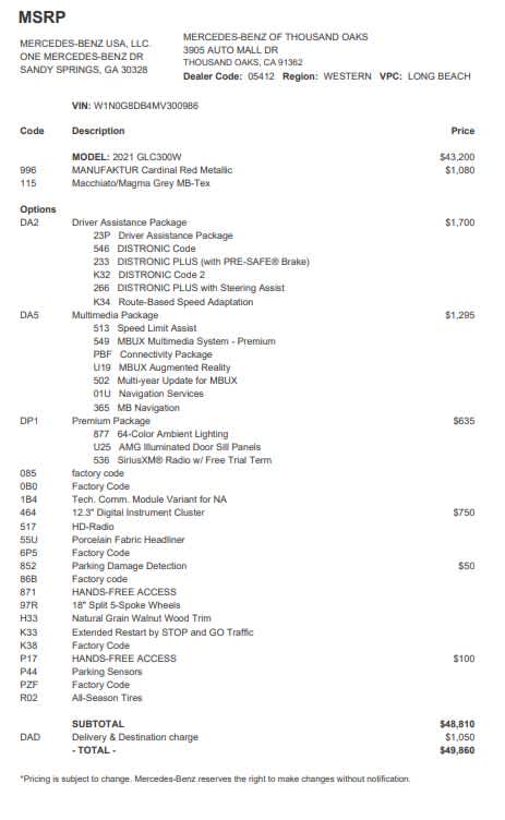 - Vehicle Name: Mercedes-Benz GLC
