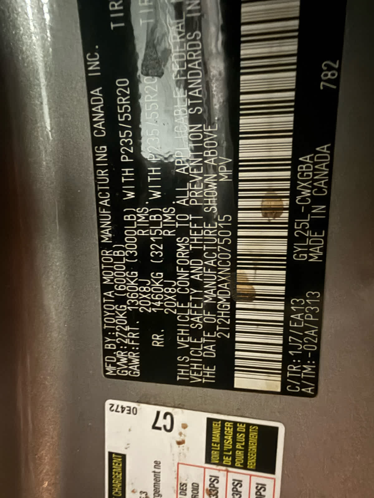 - Front Tire Size: P235/65VR18