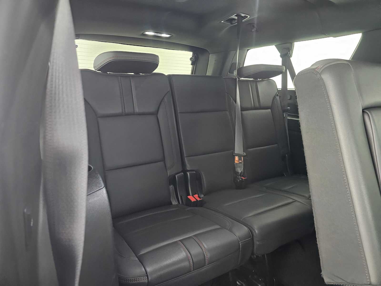 LUXURY PACKAGE includes (WPD) Driver Alert Package content, (UV2) HD Surround Vision, (UKK) Rear Pedestrian Alert, (A45) memory settings, (DXR) outside heated power-adjustable, power-folding, body-color mirrors with driver-side auto-dimming and integrated turn signal indicators, (N38) power tilt and telescopic steering column, (KI3) heated steering wheel, (KA6) second row outboard heated seats, (ATT) second row power 60/40 split-folding bench seats and (AS8) third row power 60/40 split-folding bench seats (Also includes (KSG) Adaptive Cruise Control and (UGN) Enhanced Automatic Emergency Braking. SUNROOF, POWER PANORAMIC, DUAL-PANE, TILT-SLIDING with express-open and close and power sunshade, LPO, BLACK ROOF RACK CROSS RAILS (dealer-installed), AUDIO SYSTEM, CHEVROLET INFOTAINMENT 3 PREMIUM SYSTEM WITH GOOGLE BUILT-IN compatibility (select service plan required, terms and limitations apply), including nav capability, 10.2" diagonal HD color touchscreen, includes multi-touch display, AM/FM stereo, Bluetooth® streaming audio for music and most phones; featuring wireless Apple CarPlay® and wireless Android Auto® capability for compatible phones, advanced voice recognition, in-vehicle apps, personalized profiles for infotainment and vehicle settings. (STD), STEERING WHEEL, HEATED, ENGINE, 5.3L ECOTEC3 V8 with Dynamic Fuel Management, Direct Injection and Variable Valve Timing, includes aluminum block construction (355 hp [265 kW] @ 5600 rpm, 383 lb-ft of torque [518 Nm] @ 4100 rpm) (STD), TRANSMISSION, 10-SPEED AUTOMATIC electronically controlled with overdrive, includes Traction Select System including tow/haul (Standard with (L84) 5.3L EcoTec3 V8 engine or (L87) 6.2L EcoTec3 V8 engine only.) (STD), DRIVER ALERT PACKAGE includes (UKC) Lane Change Alert with Side Blind Zone Alert and (UFG) Rear Cross Traffic Alert, SUSPENSION, PREMIUM SMOOTH RIDE (STD), Leather Seats, Third Row Seat, Navigation, 4x4, Power Liftgate